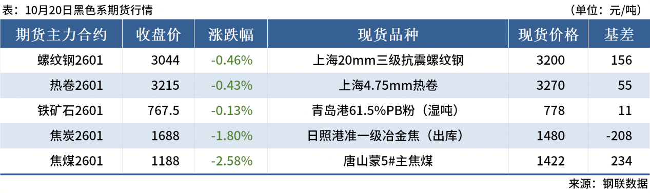 ◎10月20日,中天钢铁出台10月下旬价格,螺纹下调50元/吨,线材盘螺下调50元/吨。现华东螺纹3350元/吨,线材盘螺3550元/吨。