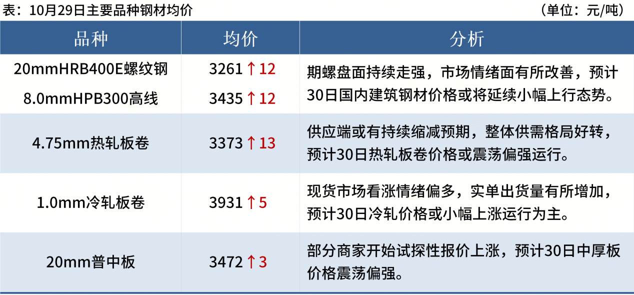 ◎ 10月29日,唐山迁安普方坯资源出厂含税累涨20报3000元/吨。