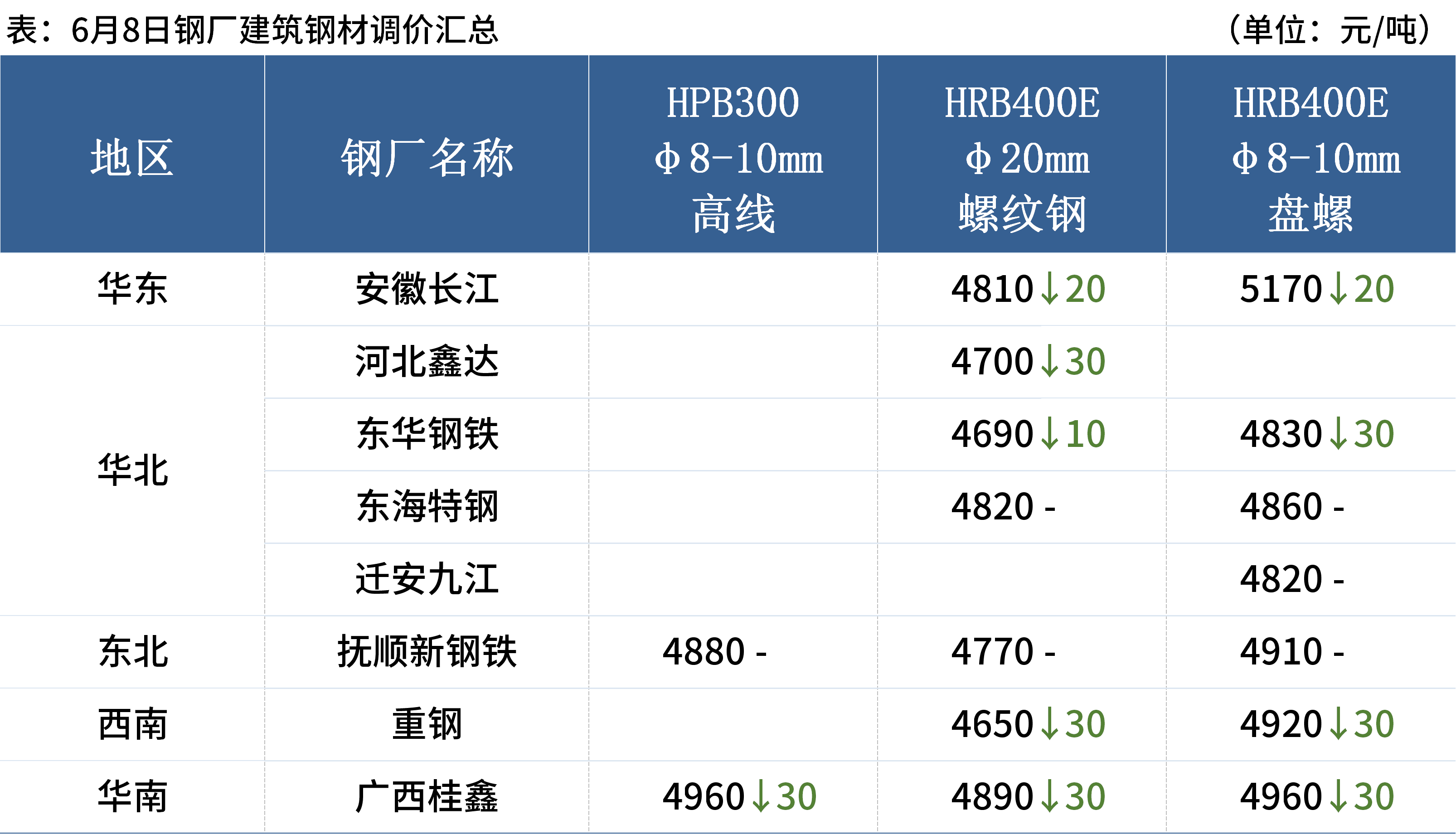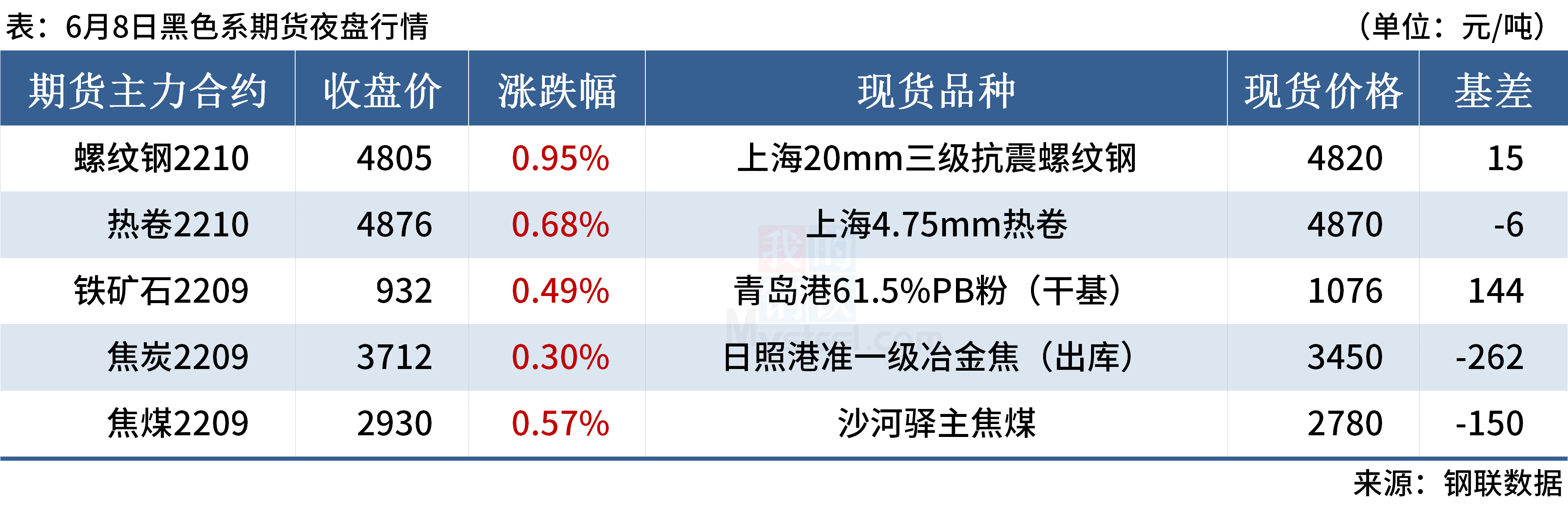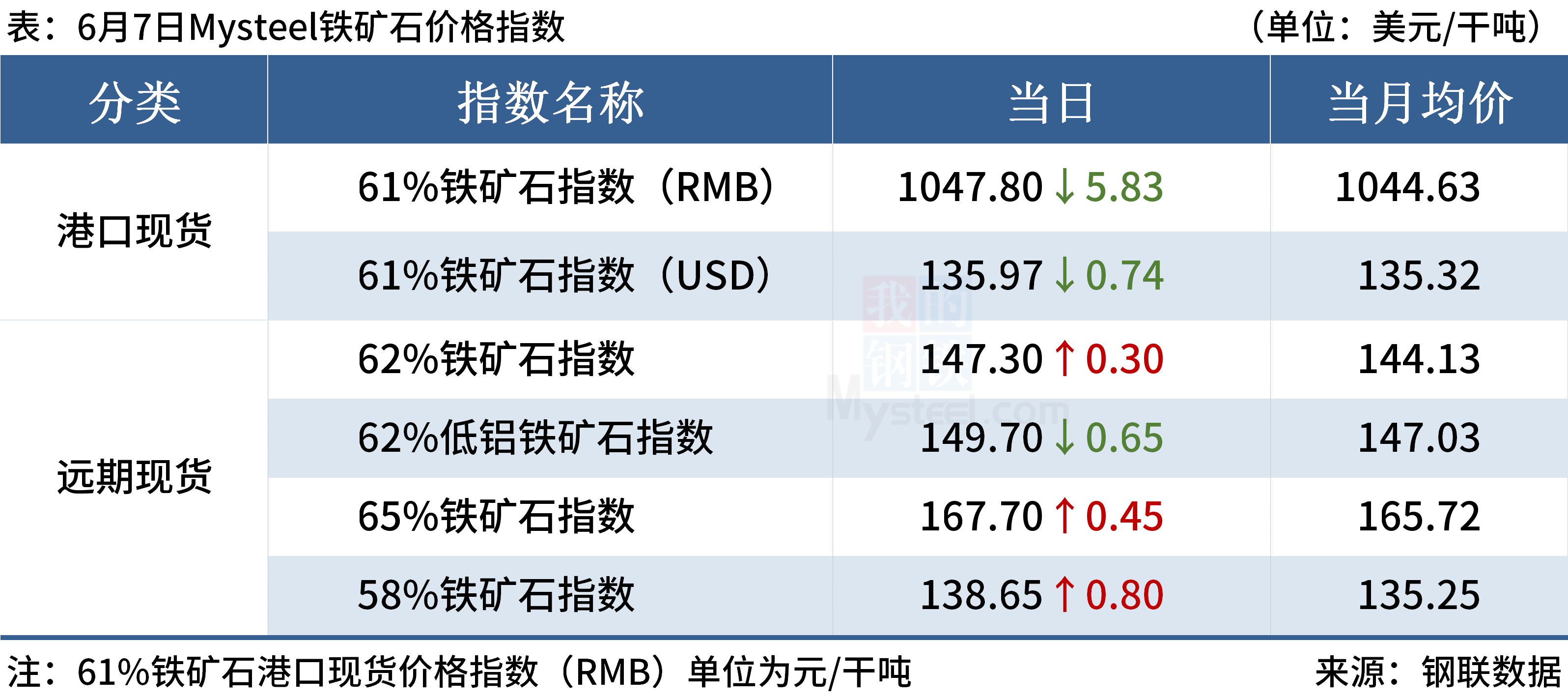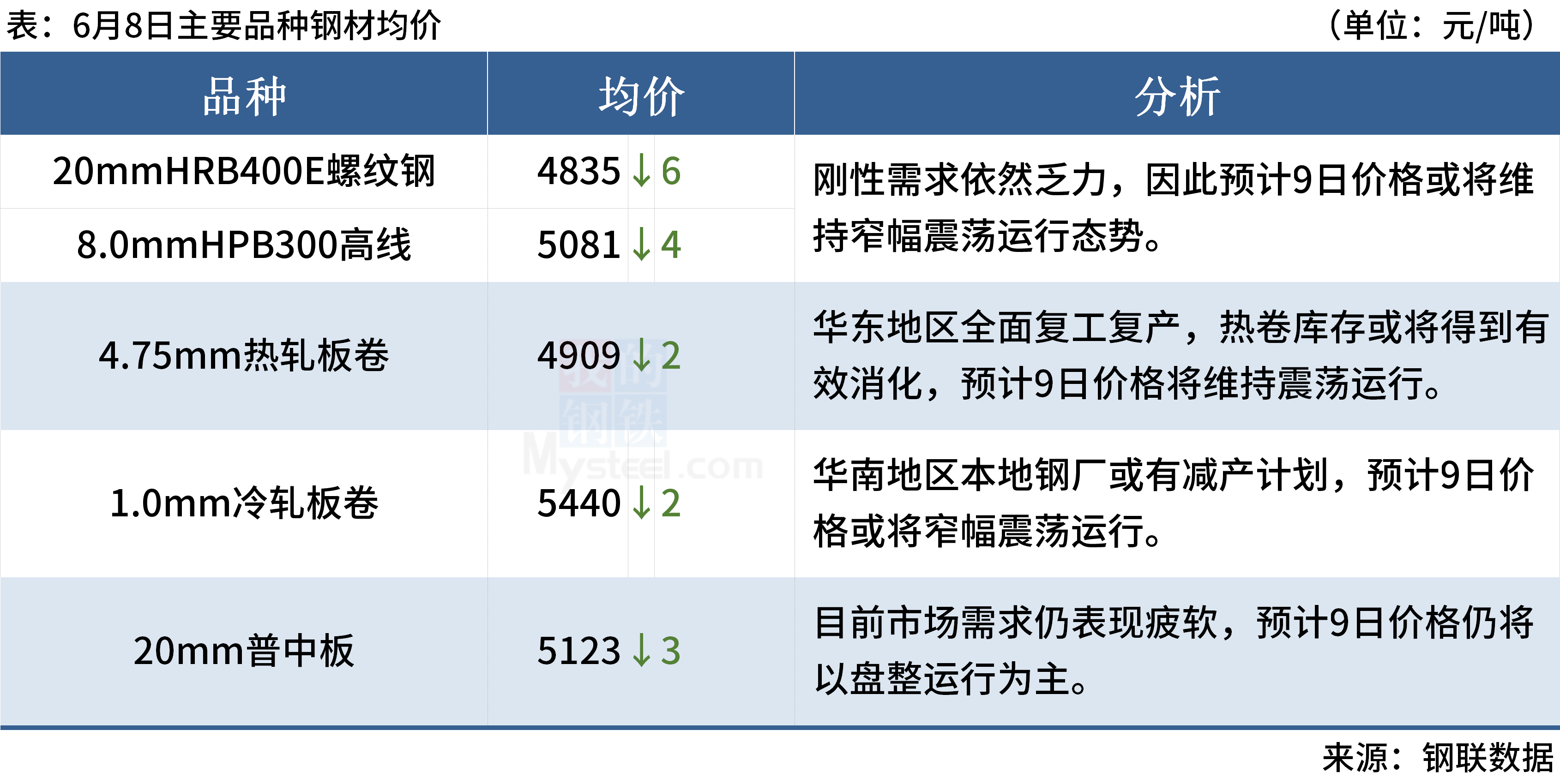 ◎ 6月8日,全国主港铁矿石成交80.50万吨,环比减27%;237家主流贸易商建材成交16.37万吨,环比增29%。