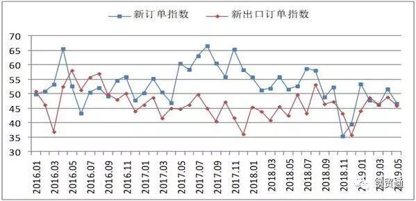 从中物联钢铁物流专业委员会调查、发布的钢铁行业PMI来看,5月份为50.0%,较上月下降2.1个百分点。分项指数中,生产指数、采购量指数、进口指数、购进价格指数均有上升,而新订单、新出口订单、原材料库存指数等下降,显示企业生产扩张,但内外市场需求增速下降,且企业原材料成本压力加大。