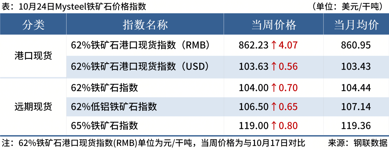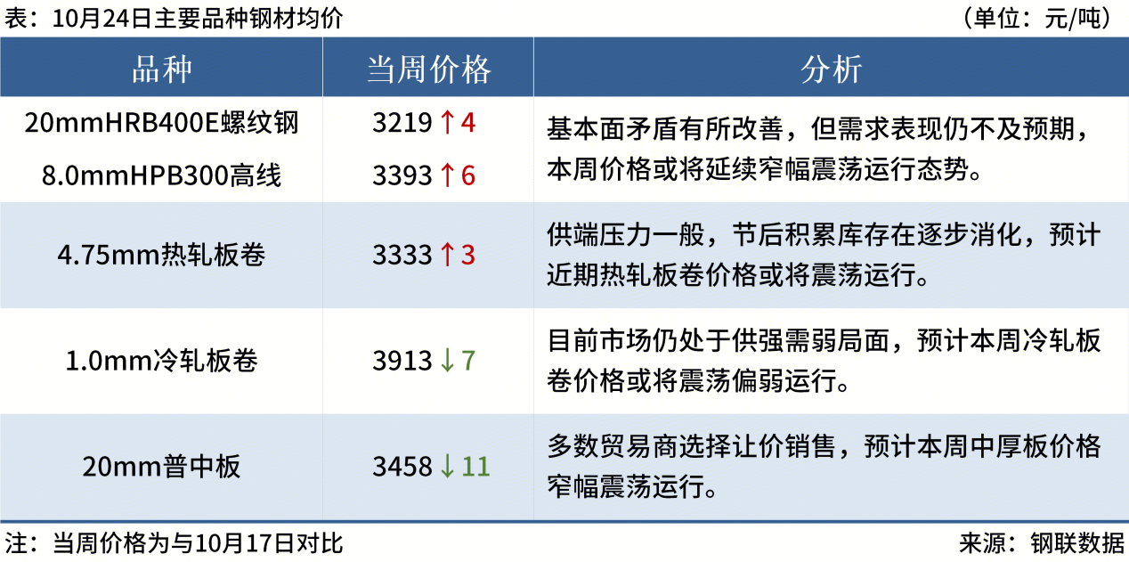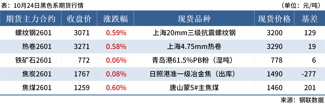 ◎ 10月24日,全国主港铁矿石成交80.20万吨,环比减16.4%;237家主流贸易商建筑钢材成交9.11万吨,环比减13.5%。
