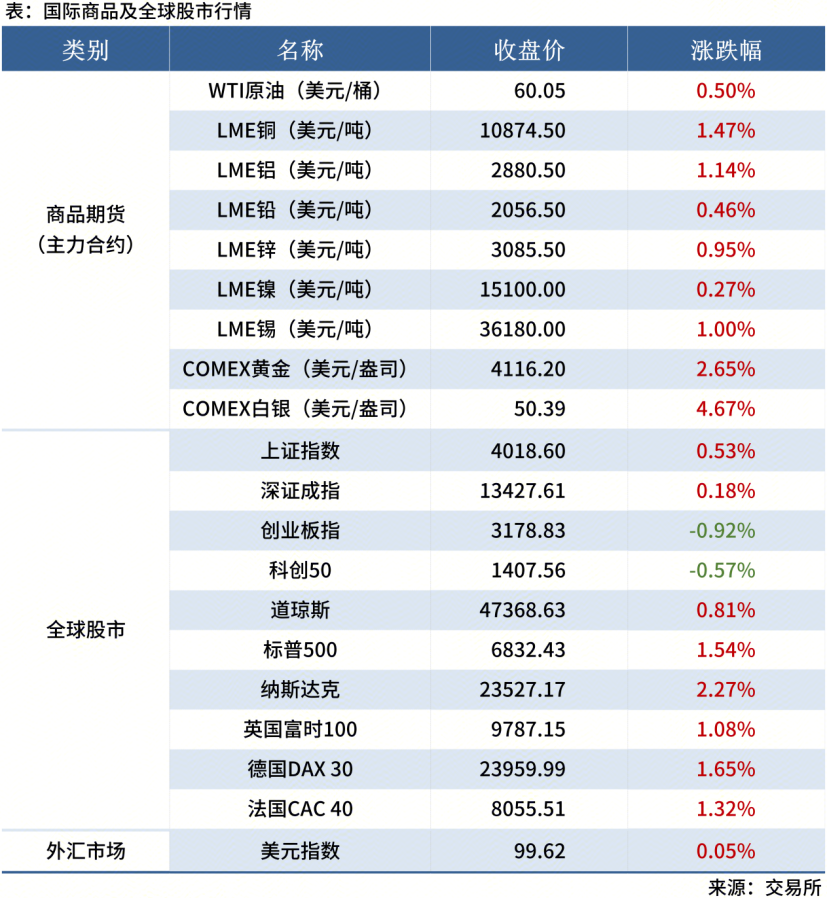◎ 当地时间11月9日,美国国会参议院通过一项旨在结束政府“停摆”的临时拨款法案。该法案将为政府提供资金直至2026年1月30日。从最新的进展和安排看,美国政府关门有可能在本周末以前结束。