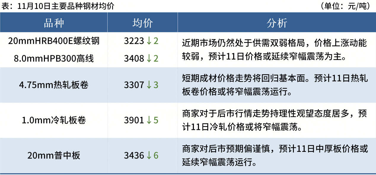 ◎ 11月10日,全国主港铁矿石成交116.10万吨,环比减7.7%;237家主流贸易商建筑钢材成交10.78万吨,环比增23.8%。