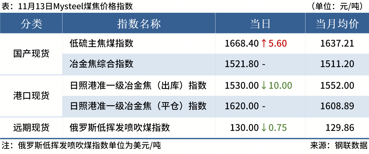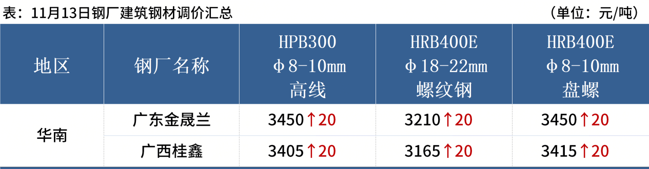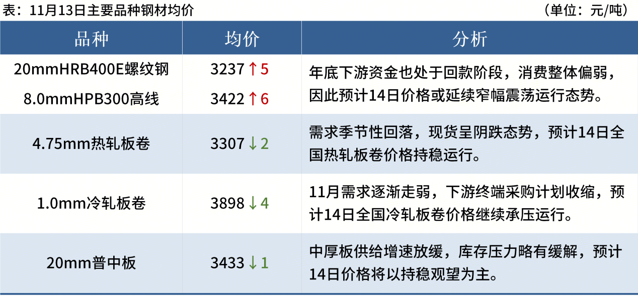 ◎ 11月13日,全国主港铁矿石成交105.00万吨,环比增6.3%;237家主流贸易商建筑钢材成交10.62万吨,环比增16%。