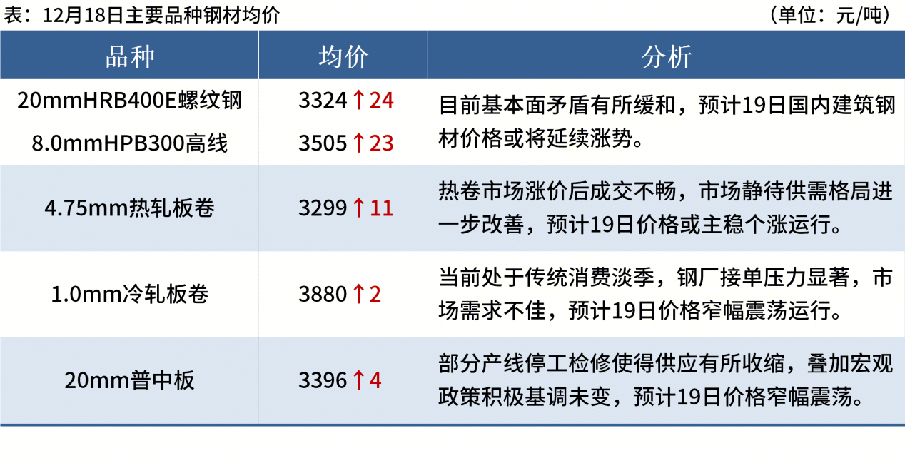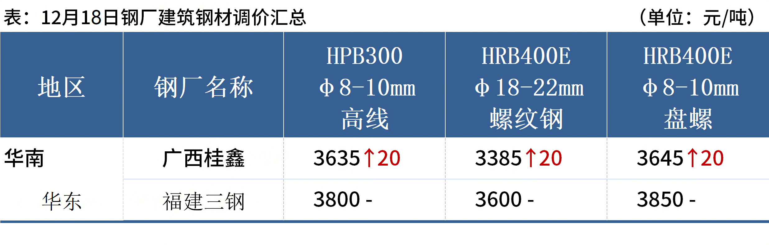 ◎攀钢集团攀枝花钢钒计划12月19日开始停产检修一座1200m³高炉,检修影响日均铁水产量0.35万吨左右,复产时间待定。