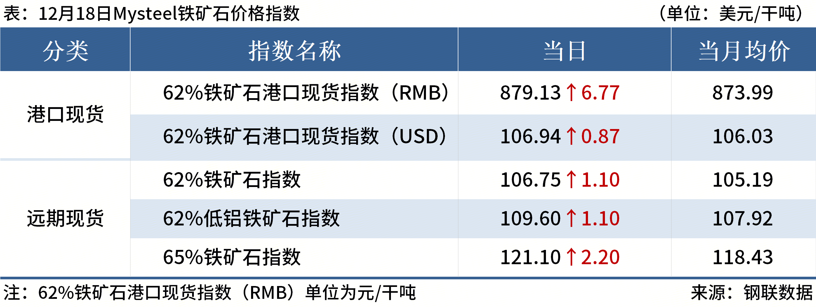 ◎12月18日,全国主港铁矿石成交98.20万吨,环比增18.2%;237家主流贸易商建筑钢材成交10.22万吨,环比增2.8%。
