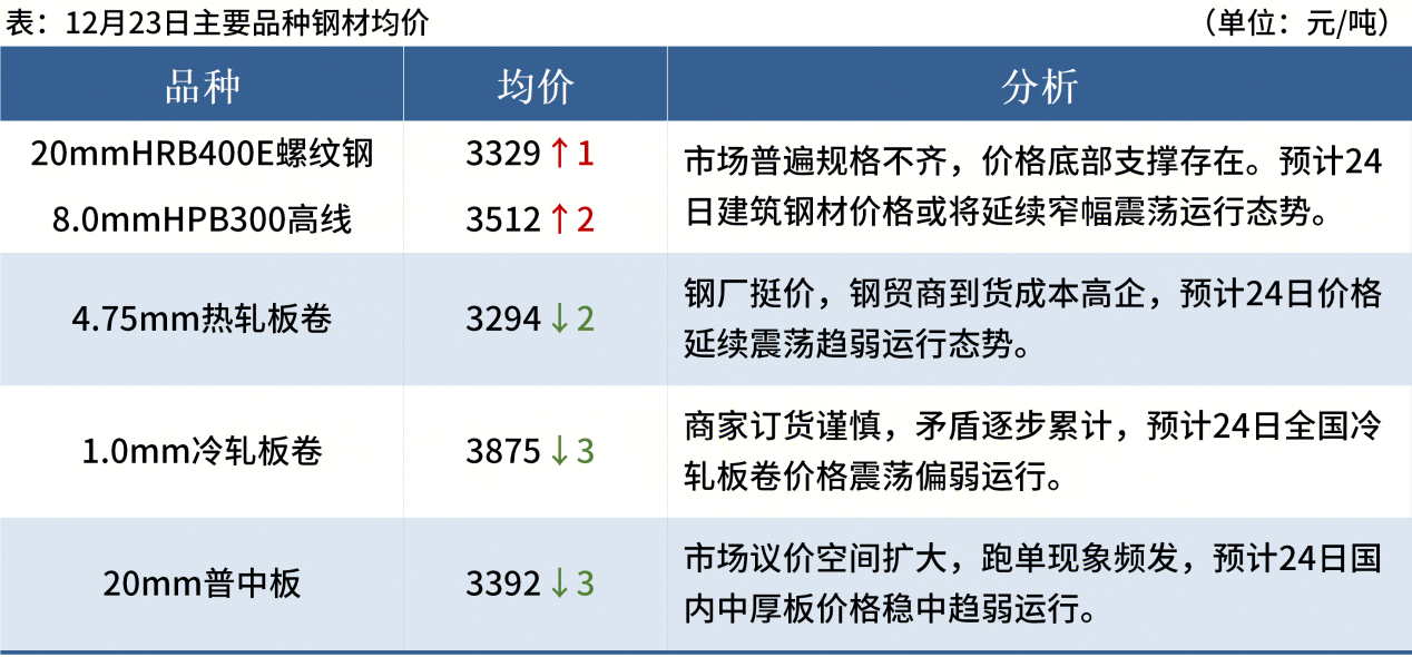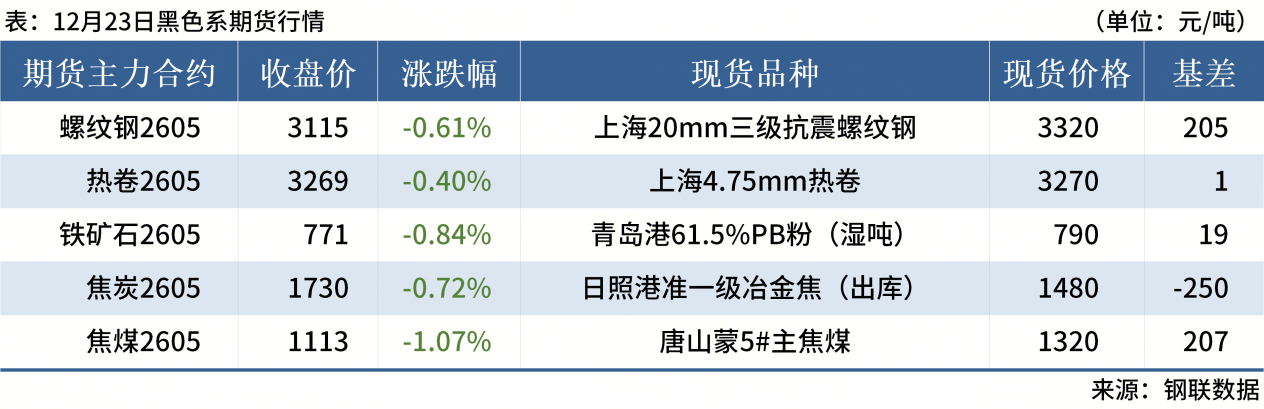 ◎ 12月23日,全国主港铁矿石成交118.70万吨,环比增17.6%;237家主流贸易商建筑钢材成交8.89万吨,环比减18.8%。