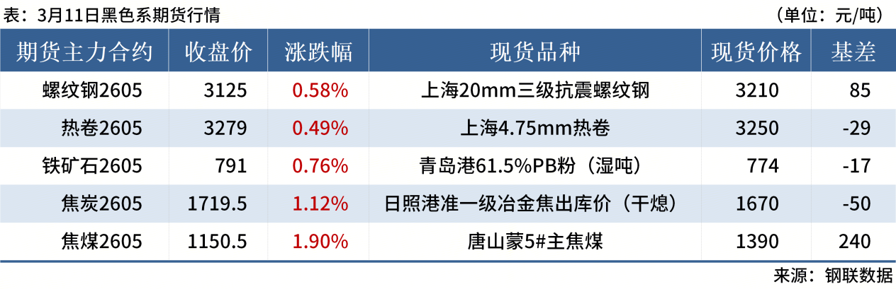 ◎ 3月11日,全国主港铁矿石成交88.05万吨,环比减9.2%;237家主流贸易商建筑钢材成交9.76万吨,环比增16.2%。