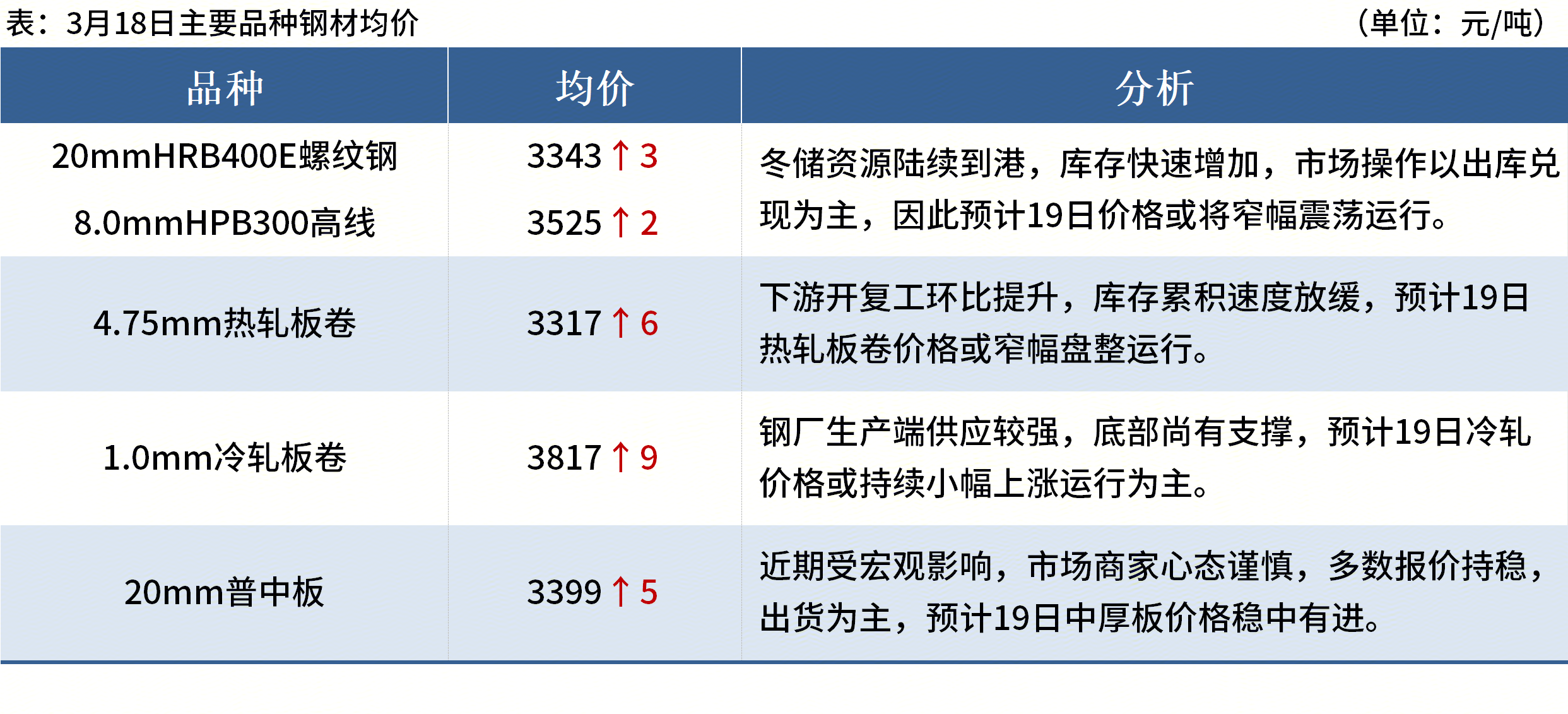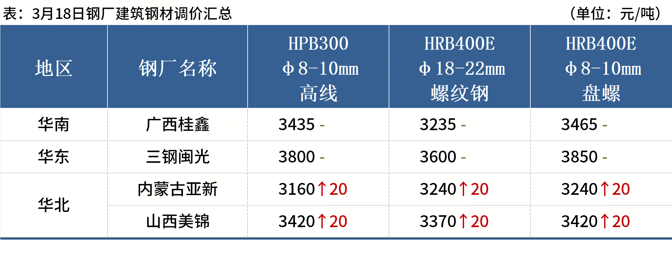 ◎福建省内主要钢厂自3月16日起陆续调整螺纹钢组距加价,Ф12mm规格在Ф18mm基础上加价上调20元/吨至170元/吨,三钢闽光同步上调Φ10mm加价至230元/吨。