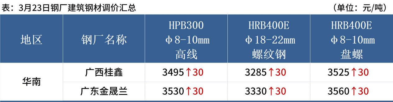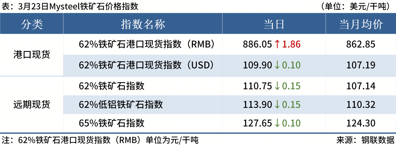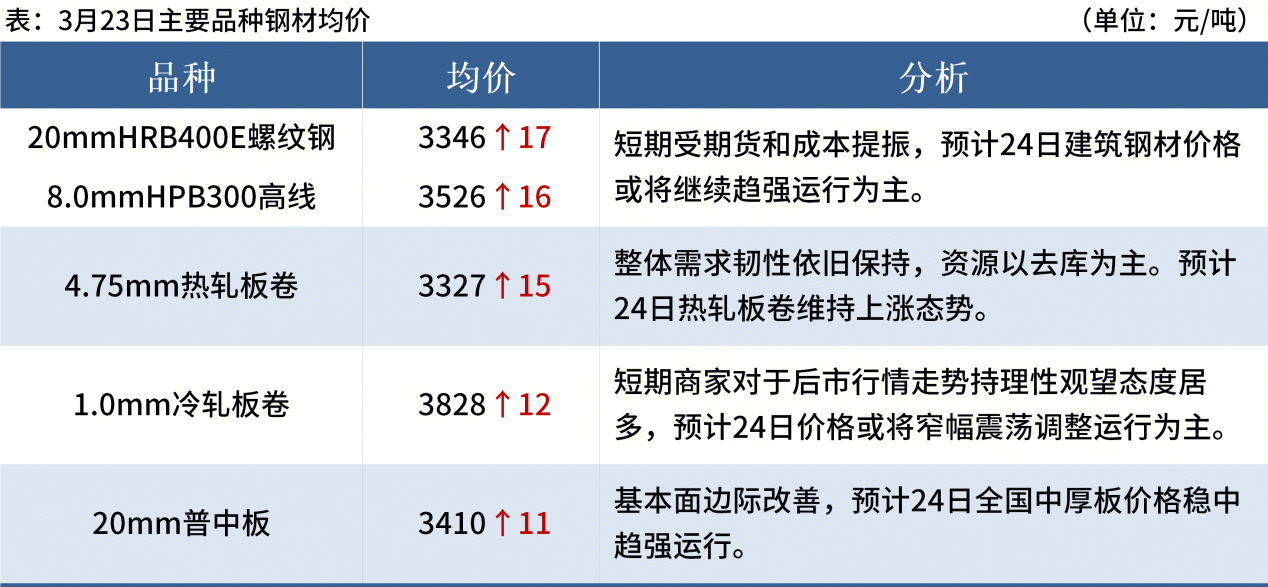 ◎ 3月23日,全国主港铁矿石成交69.70万吨,环比增43.6%;237家主流贸易商建筑钢材成交11.00万吨,环比增11.1%。