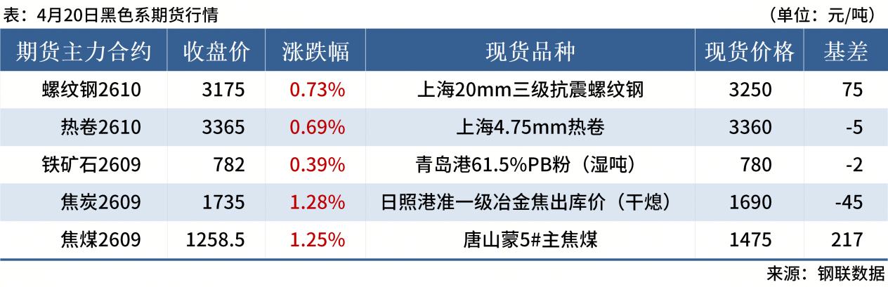 ◎ 4月20日,全国主港铁矿石成交82.00万吨,环比增20.2%;237家主流贸易商建筑钢材成交14.47万吨,环比增28%。