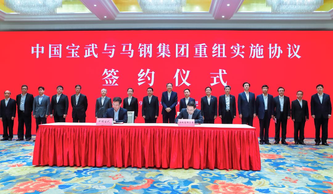 9月19日,中国宝武与马钢集团重组实施协议签约仪式在安徽合肥举行。重组后,中国宝武将完善“弯弓搭箭”型的空间布局,产能规模近亿吨。