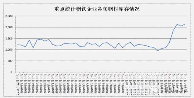 2020年3月上旬,中国钢铁工业协会重点统计钢铁企业共生产粗钢1808.60万吨、生铁1695.18万吨、钢材1676.64万吨、焦炭312.88万吨。本旬平均日产,粗钢180.86万吨,环比增长0.06%、同比下降4.02%;生铁169.52万吨,环比下降1.41%、同比下降0.49%;钢材167.66万吨,环比增长6.46%、同比增长1.11%。2020年3月上旬重点统计钢铁企业产品产量情况