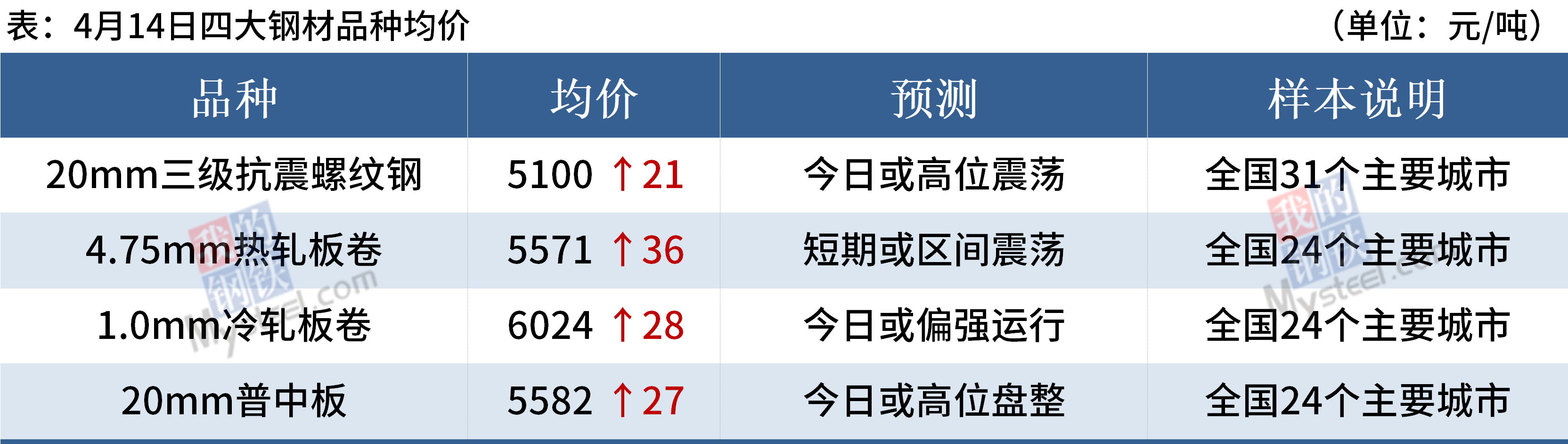 ◎ 本周唐山地区10家样本钢厂平均铁水不含税成本为3049元/吨,平均钢坯含税成本3877元/吨,周比下调16元/吨,与4月14日当前普方坯价格4940元/吨出厂相比,钢厂平均毛利润1063元/吨,周比下调104元/吨。
