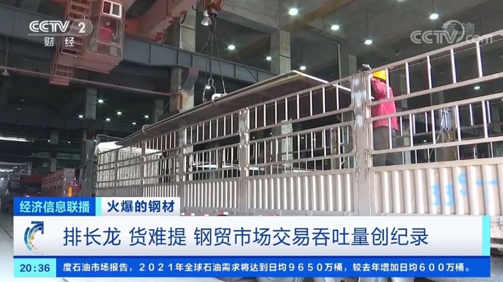 ◎ 央视聚焦钢材价格飙涨。春节之后,钢材价格平均每吨比去年低点上涨超过1000元,钢材价格的一路狂飙,带动了钢贸市场的交易火热,为了能早点儿提到货,市场仓库门前拉货的卡车甚至排起了长龙。此外,有建筑商表示,晚一年动工,得多花1000万元。